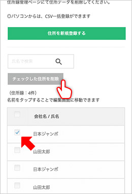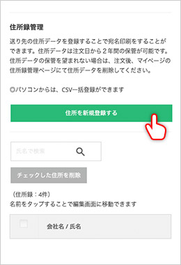 マイページの「住所録管理」より新規登録・編集・削除ができます。