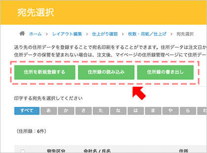CSVデータでの一括登録・編集は「住所録の読み込み」「住所録の書き出し」をご利用ください。