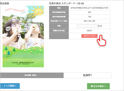 「上記内容で完成イメージを確認する」ボタンをクリックし、完成イメージを確認します。